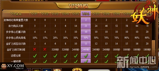 ¡¡¡¡XYÓÎÏ·¡¶ÑýÉñ¡·ÖУ¬VIPϵͳÖ÷Ҫͨ¹ý³äÖµ¼°Ïû·ÑÇé¿öÀ´¾ö¶¨µÄ£¬Íæ¼ÒÓµÓв»Í¬µÈ¼¶ËùÄܹ»ÏíÊܵ½µÄVIPÌØÈ¨Ò²²»Í¬¡£VIPÊÇÍæ¼ÒÔÚÓÎÏ·ÀïµÄÉí·ÝµÄÒ»ÖÖÏóÕ÷£¬VIPÍæ¼ÒÔÚÓÎÏ·Àï¿ÉÒÔרÊôVIPµÄÏà¹ØÄÚÈݼ°·þÎñ¡£ÔÚÓÎÏ·ÖУ¬VIPÖ÷Òª¹¦ÄÜÓÐÔö¼ÓÊÕÒæ£¬¼õÉÙÏûºÄ£¬ÀýÈç¾ÑéÊÕÒæÎïÆ·ÊÕÒæµÈ£¬¼õÉÙÔª±¦µÀ¾ß¹ºÂòÏûºÄµÈ¡£´ËÍ⻹½«Ôö¼ÓÏàÓ¦Ãâ·ÑµÄ´ÎÊýºÍ»ú»á£¬±ÈÈ縱±¾µÄÖØÖ᣻¹Óж¨ÆÚ»á¸øÍæ¼ÒÔùËÍÃâ·ÑµÀ¾ßµÈÒÔ¼°Ò»Ð©ÌØÊâµÄ½±Àø¡£