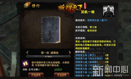 ¡¡¡¡´Ë´ÎÐÞÐй²°üº¬12²áµä¼®£ºµÀµÂ¾¡¢±âȵÐÄÊé¡¢ÆæÃŶݼס¢½ð¸Õ¾¡¢Ä«×Ó¡¢ÉñÅ©±¾²Ý¾¡¢Õ½¹ú²ß¡¢³åÐéÕæ¾¡¢Ì«Æ½ÒªÊõ¡¢É½º£¾¡¢ÎäÄÂÒÅÊé¡¢Ò×¾¡£´ÓÁìÎòµÚÎå²á¡¶Ä«×Ó¡·¿ªÊ¼£¬´ò¹Ö½«Óм¸ÂÊ´¥·¢“Áé»úÒ»ÏÖ”¼¼ÄÜ£¬¸Ã¼¼ÄÜ¿Éʹ´ò¹Ö»ñµÃ¾Ñé·±¶£¡Ëæ×ÅÁìÎòÊé¼®Ôö¶à£¬¾Ñé·±¶±¶ÊýÒ²ËæÖ®Ôö¼Ó¡£