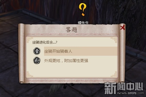 ¡¡¡¡3911¡¶¾ø´úË«½¾¡·ÓÎÀúÈÎÎñµÄÍê³É¹ý³ÌºÜºÜ¼òµ¥£¬Ïñ²É¼¯£¬Ö»Òªµ½¸½½üµÄµØµã²É¼¯Ò»µãÎï×ʾÍÍê³ÉÈÎÎñ£¬²»Óõ½¸±±¾´ò¹Ö¡£Ïñ×°±¸Ï´Á¶¡¢Éý½×Ö®Àà¸ü¼òµ¥£¬Ö±½ÓµãÁ½ÏÂÊó±ê£¬½±Àø¾Íµ½ÊÖ¡£×îÈÃÈË×¥¿ñµÄÈÎÎñµ±È»ÊǻشðÎÊÌâÀàµÄ£¬ÒòΪÕâЩÎÊÌâʵÔÚÊÇÎêÈèÈ˵ÄIQ£¬Èç“×øÆï½ø»¯ºó»á……?”´ð°¸ÓÐÁ½¸ö£¬A£º×øÆï¿ªÊ¼Æï×ÅÈË B£ºÍâ¹Û¸üìÅ£¬¸½¼ÓÊôÐÔ¸üÇ¿¡£ ÓÐË»áÑ¡´íÄØ£¿¾ÍËãÑ¡´íҲû¹ØÏµ£¬¿ÉÒÔÔÙÑ¡£¬È»ºó½±ÀøÒÀÈ»²»¼õ¡£