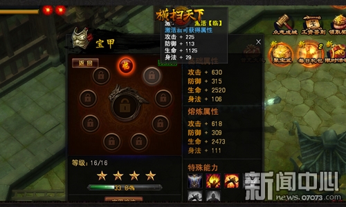 ¡¡¡¡ÈۺϺóµÄ½ðÁÛ¼×Æ¬£¬¾Í¿ÉÒÔÏâǶÔÚ±¦¼×Ö®ÉÏÁË£¬ÓÃÒÔÌáÉý±¦¼×»ù´¡ÊôÐÔ¡£Ã¿´ïµ½Ò»¶¨µÈ¼¶±ã¿É¼¤»îÏàÓ¦µÄÏâǶ²Û룬ÊôÐÔÔöÒæÊýÖµÓëËùÐè²ÄÁÏÊýÁ¿¶¼³ÉÕýÔö³¤Ç÷ÊÆ¡£