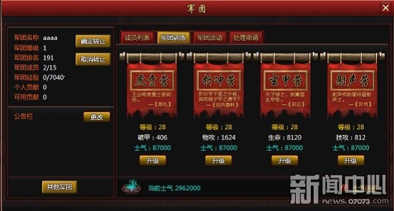 ¡¡¡¡737¡¶½Ö»úÈý¹ú¡·ÔÚ¾üÍÅÄÚ¿Éͨ¹ýÊ¿ÆøÑµÁ·ÌáÉýÕ½¶·Á¦£¬¿ÉÒÔÔö¼ÓÍæ¼Ò×Ô¼ºµÄËÄÏîÊôÐÔ£¬Ê¿ÆøÑµÁ·Í¬Ê±Ò²Îª¾üÍÅÔö¼ÓÉý¼¶¾Ñ飬²ÎÓëÈÕÐÐÒ»ÉÆ»î¶¯Ò²¿ÉÔö¼Ó¾üÍžÑé¡£¾üÍŵȼ¶ÌáÉý¼´¿É½âËø¸÷ÖÖ¾üÍŻ£¬²¢²ÎÓë·þÎñÆ÷¾üÍÅÕù°ÔµÄÕ½¶·¡£¾üÍÅ2¼¶Ê±¿ª·ÅÉîÔ¨¶á±¦»î¶¯£¬3¼¶¿ª·Å·Ê·Ê´óÕ½»î¶¯£¬4¼¶¿ª·ÅÌôÕ½ÐÄħ»î¶¯¡£