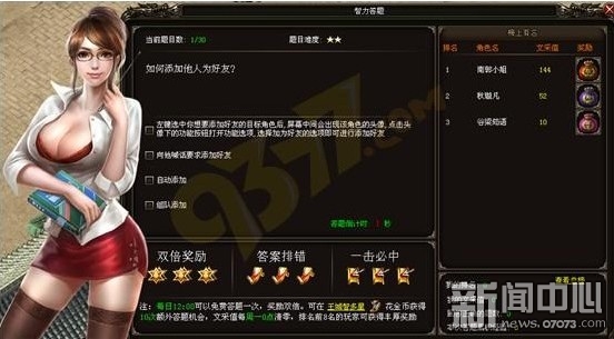 ¡¡¡¡20¼¶»òÒÔÉϵÄÓÂÊ¿£¬ÔÚÿÌìÖÐÎç12£º00-12£º10Äܹ»Ãâ·Ñ´ðÌ⣬֧¸¶½ð±Ò¿ÉÈ«ÌìÈÎÒâʱ¼ä¶îÍâ´ðÌâÊ®´Î£¬¿ÉÒÔ»ñµÃ·áºñ¾Ñé½±Àø¡£ÖÇÁ¦´ðÌâÄÜÔöÇ¿´ó¼ÒºÍÓÎÏ·µÄ»¥¶¯ÐÔ£¬Èôó¼Ò¼ÈÄÜÓÎÏ·ÓÖÄÜѧµ½Ò»Ð©ÖªÊ¶¡£´ðÌâÖлá³ö¸÷ÖÖ°üº¬ÌìÎÄ¡¢µØÀí¡¢ÀúÊ·¡¢Êýѧ¡¢¿ÆÑ§¡¢ÎÄѧµÈµÈ¸÷ÑùµÄÎÊÌâ¡£Ôڽ϶̵Äʱ¼äÄÚ»ñµÃ·áºñµÄ¾Ñé¡£ÔÚÏÐϾ֮Ó໹ÓÐһЩÓéÀÖ¡£