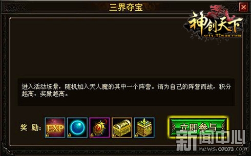 ¡¡¡¡37wan¡¶Éñ´´ÌìÏ¡·Èý½çÕ½³¡ÔÚÿÖÜÒ»¡¢Èý¡¢Îå¡¢ÈÕµÄ20:00-20:30¼ä¿ªÆô£¬Íæ¼Ò½ÇÉ«ÈËÎï´ïµ½35¼¶ÒÔÉÏ£¬Ôڻ¿ªÆôÆÚ¼ä¾Í¿Éµã»÷ÆÁÄ»ÓÒÉϽǵÄÈý½çÕ½³¡±êÖ¾½øÈ볡¾°²ÎÓëÕ½¶·ÁË¡£½øÈëÕ½³¡ºó£¬´ó¼Ò½«Ëæ»ú½øÈëÌì¡¢ÈË¡¢Ä§ÆäÖÐÒ»¸öÕóÓª£¬¿ªÊ¼ÓëͬÕóÓªµÄÍæ¼ÒÃÇÒ»ÆðÅäºÏ¿¹µÐ£¬Îª×Ô¼ºÓëÕóÓª»ñµÃ¸ü¸ßµÄÅÅÃûºÍ½±Àø¶ø²»Ð¸·Ü¶·£¡