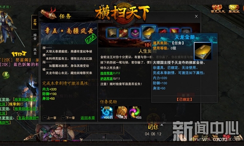 《横扫天下》是趣游自主研发运营的暗黑武侠双端网游,其新版本《横扫天下》镖行天下,将于2013年10月16日震撼上线。首发自研次世代引擎,拥有逻辑优化系统、动态交互剧情演绎及支持多端三大优势。游戏画面精致细腻,操作感受真实刺激。横扫多部武侠文学典藏,贯穿四朝恩怨情仇,诠释另类暗黑武侠世界。