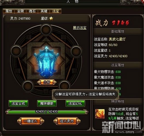 ¡¡¡¡ÒªÏëÄæÌìתÔË£¬¾Í±ØÐë¶Ô·¨±¦¹¦ÄÜ¡¢·¨±¦½ø½×ÁËÈçÖ¸ÕÆ£¬ÕâÊÇ´ó¼Ò¶¼Ï൱Çå³þµÄ£¬Ê×ÏÈÀ´ËµÏÂÉñÆæµÄ·¨±¦ºÏ³É¡£ÒªÏëºÏ³É·¨±¦´ó¼ÒÊ×ÏȵÃÊÕ¼¯Ò»¶¨ÊýÁ¿µÄ·¨±¦Í¼Æ×Óë·¨±¦ºÏ³ÉËùÐèµÄ²ÄÁÏ¡£·¨±¦Í¼Æ×¿É´Ó½µÄ§¸±±¾ÖлñµÃ£¬¶ø·¨±¦ºÏ³É²ÄÁÏ¿ÉÒÔ´Ó¿ç·þÉ̵êºÍÐлáÉ̵깺Âò£¬·¨±¦ºÏ³Éºó£¬½«Ëæ»ú»ñµÃ1-3ÐÇ·¨±¦¡£¿ÉÒԺϳɣ¬µ±È»¿ÉÒԷֽ⣬·¨±¦·Ö½â¿ÉÒÔͨ¹ýÈËÎï½ÇÉ«ÊôÐÔ·¨±¦´°¿Ú½øÐУ¬·Ö½â·¨±¦ºó½«»á»ñµÃÏàÓ¦µÄÁéÁ¦Öµ¡£