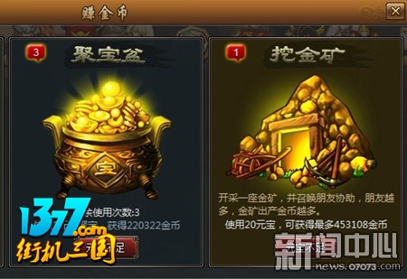 首先是做土豪,挖矿自然是最快捷有效的方式。每次开启金矿需要消耗20元宝,但是可以获得巨额金币奖励,在游戏前期算是比较丰厚的收入了。开金矿还有一个要求,那就是必须是vip1以上的玩家才可以开启,随着vip等级的提升,每天可以开启金矿的次数上限也会有一定的提升。