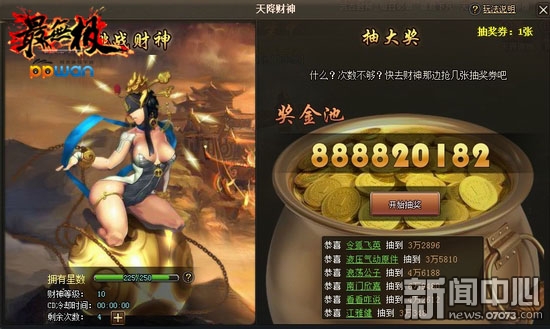 ¡¡¡¡ppwan¡¶×îÎÞ¼«¡·“Ìì½µ²ÆÉñ”Ö»ÐèÍæ¼ÒµÈ¼¶´ïµ½23£¬Íê³ÉÏà¹ØÖ÷ÏßÈÎÎñ¼´¿ª·Å¡£ÔÚ“Ìì½µ²ÆÉñ”½çÃæ£¬Ê×ÏÈÁÁϹÑ۵ľÍÊÇÕâλ÷È»óÅ®²ÆÉñ£¬Ë«ÍÈ¿çÓڻƽðÌúÇòÉÏÎ趯ÉíÇû£¬ÊÖ³ÖË¿´øºôÖ®Óû³ö£¡ÓÒ±ßÔòÊdzé´ó½±µÄ½±½ð³Ø¡£Ã¿ÌìÍæ¼Ò¿ÉÒÔµã»÷ÃÀÅ®²ÆÉñ£¬Ãâ·Ñ5´Î½øÈëÌôÕ½²ÆÉñ¸±±¾£¬ÔÚ¸±±¾ÖУ¬ÃÀÅ®²ÆÉñÊDz»»á¹¥»÷Íæ¼ÒµÄ£¬ËýÖ»»áÈÎÓÉÍæ¼ÒÇÖÂÔµÄàÞ£¡