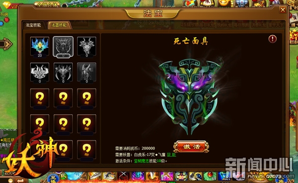¡¡¡¡ÏëÒªÓÐÉÏÊö¼¼Äܼӳɣ¬ÄǾͱØÐëÏȼ¤»îÕâЩÉñÆ÷£¬¼¤»îÌõ¼þ·Ö±ðÊÇÉÙÁ¿Ç®±Ò£¬Ä³Ò»Ìض¨ÑýÊÞÒÔ¼°Ç°Ö÷¨Æ÷ÐÞÁ¶ÖÁ10¼¶£¬µ±È»ÌìÏÉÁéʯûÓÐǰÖ÷¨Æ÷µÈ¼¶µÄÏÞ¶¨¡£¾ÍÏñËÀÍöÃæ¾ß£¬±ØÐëÓµÓÐ20wÇ®±Ò¡¢°×»¢ÏµÑýÊÞ—17±ä·ÉÁ®ÒÔ¼°¼áÈÍÒâÖ¾¼¼ÄÜ10¼¶£¬·½¿É¼¤»î¡£