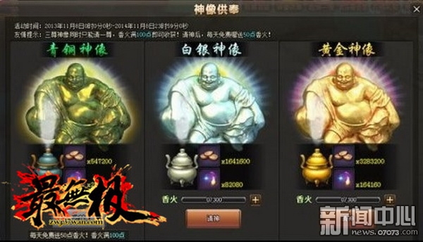 ¡¡¡¡“ÉñÏñ¹©·î”ÊÇ37wan¡¶×îÎÞ¼«¡·ÖÐнúÉÏÏßµÄ׬Ǯй¦ÄÜ¡£¸Ã¹¦Äܽ«»á²ú³öº£Á¿Í±ÒºÍÕæÆø¡£“ÉñÏñ¹©·î”ÖУ¬¹²ÓÐÈýÖÖ²»Í¬Æ·ÖʵÄÉñÏñ£¬´ÓµÍµ½¸ßÒÀ´ÎΪÇàÍÉñÏñ¡¢°×ÒøÉñÏñ¡¢»Æ½ðÉñÏñ¡£Èý×ðÉñÏñÿ´ÎÖ»ÄÜÇëÒ»×ð¡£µã»÷ÉñÏñÏ·½µÄ“ÇëÉñ”°´Å¥¼´¿É¡£ÉñÏñÆ·ÖÊÔ½¸ß£¬ÇëÉñ»¨·ÑµÄÔª±¦¾ÍÔ½¶à£¬µ«»ñµÃµÄÏàӦͱҽ±ÀøÒ²Ô½¶à¡£