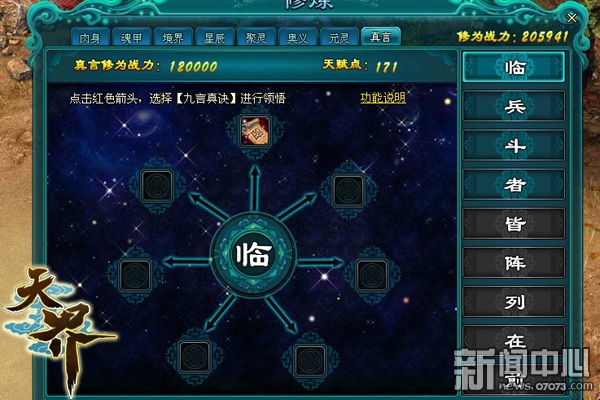 ¡¡¡¡¡¶Ìì½ç¡·ÖУ¬Íæ¼ÒµÈ¼¶´ïµ½74¼¶Ê±£¬±ã»á½Óµ½NPCÓ£ÌìÎ裿Î×ÑÌÓêµÄÈÎÎñ£¬È¥ÁìÂÔÈý½çÖÐ×îΪ»Þɬ¼èÐÁÈ´ÓÖɱÉËÁ¦Ê®×ãµÄ“ÕæÑÔ”Íæ·¨¡£ÓÎÏ·ÖУ¬¾Å×ÖÕæÑÔÖ¸µÄÊÇ“ÁÙ¡¢±ø¡¢¶·¡¢Õß¡¢½Ô¡¢Õó¡¢ÁС¢ÔÚ¡¢Ç°”£¬Ã¿Ò»×ÖÕæÑÔ¶¼´ú±í×Ų»Í¬µÄº¬Ò壬²¢ÇÒ·Ö³ÉÁ˲»Í¬µÄÁìÎòÈÎÎñ£¬Íæ¼ÒÐèÒªÖðÒ»Íê³É²ÅÐС£