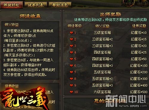 ¡¡¡¡¡¶ÂÒÊÀÈýÒå¡·×öͽµÜ»¹ÊÇʦ¸µÖ»ÄܶþÕßÑ¡ÆäÒ»£¬×öÁËʦ¸µ¾Í²»ÄÜ×öÈ˼ҵÄͽµÜ£¬Í¬Àí£¬°ÝÁËÊÇʦ¸µ£¬¾Í²»ÄÜÊÕͽÁË£¬Íæ¼Ò×î¶à¿ÉÒÔͬʱÊÕ8¸öͽµÜ£¬²»¹ÜÊÇ×öÈÎÎñ£¬Ë¢¸±±¾£¬´òBOSS£¬ºÍͽµÜÒ»Æð£¬ºÍͬÃÅʦÐÖµÜÒ»Æð£¬¶¼¿ÉÒÔ¸ü¼Ó°²ÐÄ¡£ÐÅÈÎÊǽ¨Á¢ÔÚÁ˽âµÄ»ù´¡ÉÏ£¬¡¶ÂÒÊÀÈýÒ塷ʦͽϵͳ¸øÄã×îºÃµÄ½»»¥£¬½á½»¸ü¶àµÄÅóÓÑ¡£