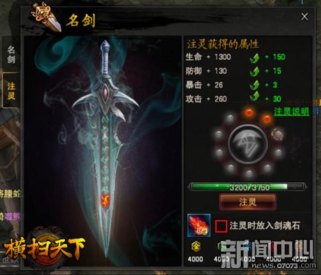 ¡¡¡¡Ãû½£ÓÐÁ飬6711¡¶ºáɨÌìÏ¡·ÐÂÔö×¢Áéϵͳ£¬Íæ¼Ò¿ÉÒÔ½«Ðİ®µÄ±¦½£´òÄ¥µÃ¸üΪ·æÀûÁË£¡Í¨¹ýÏûºÄÎåÐÐÕæÆø£¬¿ÉÒÔ¼¤»îÉϹÅÉñÊÞÀÓÓ¡ÔÚ½£ÁéÉϵÄÁé·û£¬¶øÊ¹Óý£»êʯ¿É¼õÉÙÎåÐÐÕæÆøÏûºÄ¡£µã»÷Ãû½£ÄÚ×¢Áé°´Å¥À´¼¤»îÎ§ÈÆÁé·ûµÄÊ®·½Ô²ÐÇ£¬µ±Ô²ÐÇÈ«²¿¼¤»îºó£¬ÉϹÅÉñÊÞµÄÁé·û¾Í»á±»¼¤»î£¬¼¤»îÖ®ºó±¦½£µÄÊôÐÔ½«µÃµ½ÖʵķÉÔ¾£¡