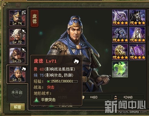 第二个要重点说明的就是紫霞游戏《攻城掠地》中率先出现的红色武将庞德,作为红色武将,他的威力自然不容小觑,光是战法伤及对方三排就让人眼前一亮,战法威力更是比之前的那些武将要凶猛的多。