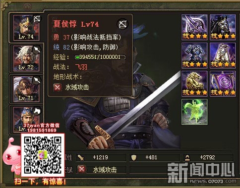 要说的第三个武将就是夏侯惇,这位东汉末年曹操部下大将,汉朝开国功臣之一夏侯婴的后代,在紫霞游戏《攻城掠地》中也是威武无比,战法“飞羽”一出,直穿敌人4排兵。在可以招募以上几位武将之时,就果断招募。但美中不足的是,夏侯惇的“勇”比较低,易被格挡。