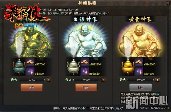 ¡¡¡¡ÉñÏñ¹©·îÊÇppwan¡¶×îÎÞ¼«¡·ÖÐÒ»¸ö¶ÀÌØµÄÍæ·¨£¬ÀïÃæÓÐÈý×ðÉ¢·¢×Ų»Í¬¹ââµÄÃÖÀÕÉñÏñ£¨ÇàÍÉñÏñ¡¢°×ÒøÉñÏñ¡¢»Æ½ðÉñÏñ£©£¬ÉñÏñ±§Ï¥¶ø×ø£¬Ìɶ´ó¶Ç£¬¹þ¹þ´óЦ£¡Éíǰ°Ú·Å׏©ÊÀÈËÕ°ÑöµÄѬÏãôÁôÁÉñ¯£¬Íæ¼Ò¿ÉÒÔ»¨·ÑÏàÓ¦Ôª±¦Ñ¡ÔñÈý×ðÉñÏñÖеÄÒ»×ðÀ´ÇëÉñ£¬Éñ¯Ïã»ðÿÂú100¼´¿ÉÊÕ»ñÒ»´Î£¬×ܹ²¿ÉÒÔÊÕ»ñÈý´Î¡£Ã¿´ÎÊÕ»ñ¶¼ÄÜ»ñµÃº£Á¿ÍÇ®¿¨ºÍÕæÆø¿¨£¬Èç¹ûÇëµÄÊǻƽðÉñÏñ£¬ÍÇ®¿¨ºÍÕæÆø¿¨¸üÊÇ·±¶ÁìÈ¡£¡Ã¿Ììϵͳ»áÃâ·ÑÔùËÍ50µãÏã»ð£¬»¨·ÑÉÙÁ¿Ôª±¦£¬ÍÇ®¿¨ºÍÕæÆø¿¨¸üÊÇÒ»Ãë»ñµÃ£¡