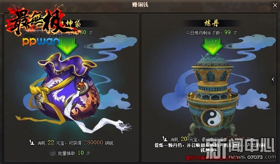 ¡¡¡¡¶ø×¬ÍÇ®ÖзÖÓÐǬÀ¤´üºÍÁ¶µ¤£¬ÍǮҲÊǺ£Á¿ÁìÈ¡¡£Ç¬À¤´üÖ»Ð軨·ÑÏàÓ¦Ôª±¦£¬ÍÇ®Á¢Âí»ñµÃ£¬Ïë»ñµÃÔ½¶àÍǮԪ±¦ÊýÁ¿Ò²»áÏàÓ¦Ôö¼Ó¡£Á¶µ¤Ö»ÐèÏûºÄ20Ôª±¦¾ÍÄÜ»ñµÃÒ»¿ÅÔ̺¬ÎÞÊýÍÇ®µÄÏɵ¤£¬¿ªÆôÉñ¯Á¶µ¤¿ÉÒÔÑûÇëËÄλºÃÓѰïæ£¬ÐÖúµÄºÃÓÑÔ½¶à£¬²ú³öµÄÍǮԽ·áºñ¡£Íæ¼ÒVIPµÈ¼¶Ô½¸ßÄܹ»»ñµÃµÄ׬ÍÇ®ºÍÁ¶µ¤´ÎÊý¸üÊÇÎÞÏÞÔö¼Ó£¡