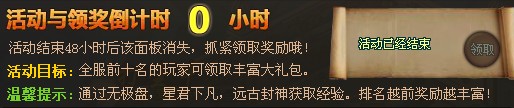 ¡¡¡¡²¢ÇÒ£¬ÎªÁ˹ÄÀø´ó¼Ò£¬ÔÚµÚÒ»Ìì´ïµ½25¼¶£¬µÚ¶þÌì´ïµ½34¼¶£¬µÚÈýÌì´ïµ½36¼¶µÄÍæ¼Ò¾ù¿ÉÒÔ»ñµÃ½±Àø£¡