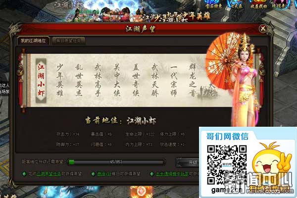 ¡¡¡¡ÑïÃûÁ¢Íò£¬³öÈËÍ·µØÊÇÿ¸öÉÙÄêÀɵÄÃΣ¡¡¶³àÌ졷ȤζÉùÍûÍæ·¨À´Ï®£¬Íæ¼Ò½«Äܹ»Í¨¹ý×Ô¼ºµÄŬÁ¦Öð½¥»ýÀÛÉùÍû£¬´Ó¶øÑïÃûÓÚ½ºþ¡£ÉùÍû´ïµ½Ò»¶¨µØ²½ºó£¬Äã²»½öÄܹ»µÃµ½ìÅ¿áµÄ³ÆÎ½¡¢³¬¸ßµÄÊôÐԼӳɣ¬¸üÓÐÃÀŮͶ»³Ëͱ§¡£ÉÙÄ꣬Äã±Ø³É´óÆ÷£¬Ò»ÆðÈ¥¿´¿´°É£¡