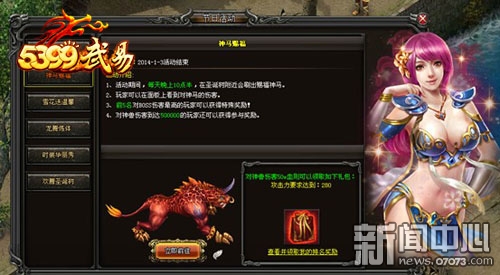 ¡¡¡¡»î¶¯ÆÚ¼ä£¬Ã¿ÌìÍíÉÏ10µã°ë£¬ÔÚÊ¥µ®Ê÷ÅԱ߻áË¢³ö´Í¸£ÉñÂí¡£Íæ¼Ò¿ÉÒÔ¶ÔÉñÊÞÂí·¢¶¯¹¥»÷£¬ÏµÍ³½«ÔÚ¼ÆÊýÃæ°åÉÏͳ¼ÆÄã¶ÔÉñÊÞÔì³ÉµÄÉ˺¦¡£Ã¿Íí»î¶¯½áÊøÊ±£¬¶ÔÉñÊÞÉ˺¦ÅÅÐÐǰ5µÄÍæ¼Ò¿ÉÒÔ»ñµÃÌØÊâ½±ÀøÅ¶£¬½ð±Ò¡¢Éý»ª½á¾§¡¢ÊÞÁ鵤¡¢Áé»ê½á¾§¾Í¶¼ÊÇÄãµÄÀ²¡£