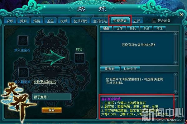 ¡¡¡¡¡¶Ìì½ç¡·ÖУ¬±¦Ê¯²»ÊÇÄãÏëºÏ³É¾ÍÄܺϳɵģ¡Ê×ÏÈ£¬Ö»ÒªµÈ¼¶´óÓÚ»òµÈÓÚ6¼¶µÄ±¦Ê¯²ÅÄܺϳɡ£Æä´Î£¬Ã¿´Î±¦Ê¯ºÏ³É¶¼¾ßÓÐÒ»¶¨³É¹¦ÂÊ¡£×îºó£¬±¦Ê¯ºÏ³É»¹ÐèʹÓӺϳÉʯ”µÀ¾ßÒÔ¼°Ïà¹Ø²ÄÁϲÅÐС£ËäÈ»ÓÐËù·±Ëö£¬µ«Ö»ÒªÄãÄܹ»´ï³ÉÉÏÊöÌõ¼þ£¬±ã¿É“Ò»¼ü»¯”ºÏ³É³öб¦Ê¯£¬Ê®·ÖÇáËÉ·½±ã¡£