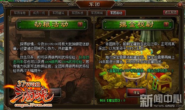 ¡¡¡¡ÔÚ37wan¡¶Èý¹ú»ê¡·ÖУ¬Ãþ½ðУξÊǾüÍÅÀïÐÂÔöµÄÄÚÈÝ£¬ÒѼÓÈë¾üÍŵÄÍæ¼Òÿ´Î̽±¦¾ùÐèÒªÏûºÄ²Ø±¦Í¼£¬Ì½±¦ºóÐèÒªÔÚÍíÉÏ24µãǰ½øÐÐÃþ½ð£¬ÒÔ·À»ú¹ØÆô¶¯·â±Õ±¦²Ø¡£