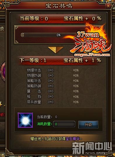 ¡¡¡¡37wan¡¶Èý¹ú»ê¡·±¦Ê¯¹²Ãù£ºÖ÷¹«µÈ¼¶´ïµ½44¼¶ºó¿ª·Å£¬ÏûºÄ±¦Ê¯¾«»ª¿ÉÒÔÌáÉý±¦Ê¯¹²ÃùµÈ¼¶£¬µÈ¼¶ÌáÉýºóÔö¼Ó¸ÃÎ佫µÄÕ½¶·ÊôÐÔ£¬²¢ÇÒ»áÒÔ°Ù·Ö±ÈÔö¼Ó¸ÃÎ佫ÏâǶ±¦Ê¯µÄÊôÐÔ¡£