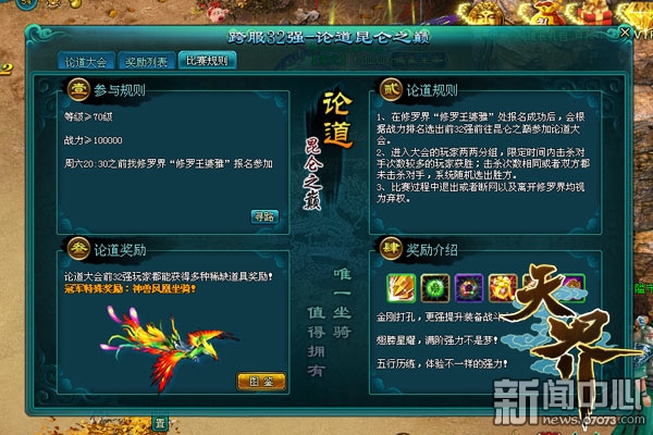 ¡¡¡¡¡¶Ìì½ç¡·¿ç·þսĿǰ¿ÉÒÔËãÊÇÓÎÏ·ÖйæÄ£×î¸ßµÄPKÕ½ÒÛ¡£Éí´¦ÆäÖУ¬ÄãËù½«Óöµ½µÄ¶ÔÊÖ¶¼ÊÇ×îÇ¿µÄ£¬»ñµÃµÄ½±ÀøÒ²ÊÇ×î·áºñµÄ¡£¡¶Ìì½ç¡·ÖУ¬¿ç·þÕ½½«ÓÚÿÖÜÁùµÄ20:30-21:00ʱ¶Î¿ªÆô£¬½ìÊ±Íæ¼ÒÖ»Ðèµ½ÐÞÂÞÍõNPC´¦±¨Ãû¼´¿É¡£ÏµÍ³»á¸ù¾Ý±¨ÃûÍæ¼ÒµÄʵÁ¦ÌôÑ¡¿É²ÎÈüÑ¡ÊÖ£¬Ò»°ãÊÇÅÅÃû¿¿Ç°µÄ32ÃûÑ¡ÊֿɲμӱÈÈü¡£