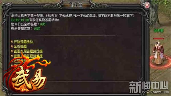 ¡¡¡¡Ã¿Ìì19:15-19:30£¬6711¡¶ÎäÒס·È«Ãñ´ðÌâʱ¼ä½«³ä·Ö¿¼ÑéÄãµÄ֪ʶ¹¦µ×¡£»î¶¯ÆÚ¼äÄãÒªÍê³É20µÀËÄѡһÌâÄ¿£¬´ðÌâʱÔڻشðʱ¼äÄÚÕ¾ÔÚÑ¡Ïî¶ÔÓ¦µÄ´ð°¸ÇøÓòÄÚ¼´¿É£¬´ð¶Ô¼´¿É»ñµÃ¾ÑéºÍÎIJÉÖµ¡£´ðÌâÍê±Ïºó£¬ÎIJÉÖµÅÅÐÐǰÁеÄÍæ¼Ò»¹ÄÜ»ñµÃ¶îÍâ½±Àø¡£