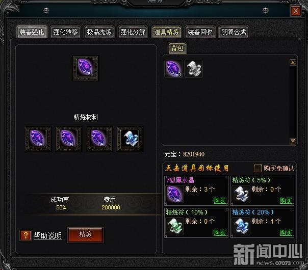 ¡¡¡¡4399ÆßɱµÀ¾ß¾«Á¶ÊÇÌṩºÚË®¾§ºÏ³É¹¦ÄÜ£¬¿ÉÒÔ½«3¸öͬ¼¶ºÚË®¾§ºÏ³ÉÖÁ¸ßÒ»¼¶µÄºÚË®¾§£¬Ê¹Óþ«Á¶·û¿ÉÌáÉýºÏ³É³É¹¦ÂÊ£»ÖÁÓÚ×°±¸»ØÊÕ¹¦ÄÜÔÚÕâÀï¾Í²»Ï¸ËµÀ²£¬Áéʯϵͳ×ÊÁÏÖÐÓÐÏêϸ˵Ã÷Ŷ£¡