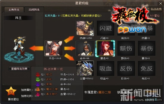 ¡¡¡¡µ±µÈ¼¶´ïµ½ÁùÊ®Îå¼¶£¬Äã¾Í¿ÉÒÔºÍÄãµÄС»ï°éÊÖÀÊÖÒ»ÆðÉÏÕóÁË£¬ÅÓ´óÍþÎäµÄÕóÈÝ£¬ÊDz»ÊǺܿáÄØ£¡Íê³ÉÁËÖ÷ÏßÈÎÎñ“ºô£¡ºô±£Ò唣¬ÔÚÓÒϽǼ´»á³öÏÖ“¹é딣¬´ò¿ªÄã¾ÍÄÜ¿´µ½“ÐǾý¹éλ”µÄ½çÃæÁË¡£ÔÚ½çÃæÉÏ£¬ÓÐÖ÷½ÇÕ󷨺ͳöÕ½Õ󷨣¬Ö÷½ÇÕ󷨾ÍÊÇÍæ¼Ò½ÇÉ«±»¸³ÓèµÄÕ󷨣¬¶ø³öÕ½Õó·¨Õë¶ÔÍæ¼Ò³öÕ½ÐǾýµÄ£¬¿ÉÒÔµã»÷²é¿´Õó·¨Ð§¹ûÀ´¿´Õ󷨼ӳÉÇé¿ö¡£±»ÏÐÖõÄÐǾý²»½öÄܹ»ÉÏÕó¸øÍæ¼Ò±¾ÉíÔö¼ÓÊôÐÔ£¬¶øÇÒÐǾý»¹Äܹ»¸øÐǾýÔö¼ÓÊôÐÔ£¬ÓÐľÓкÜÀ÷º¦¡£