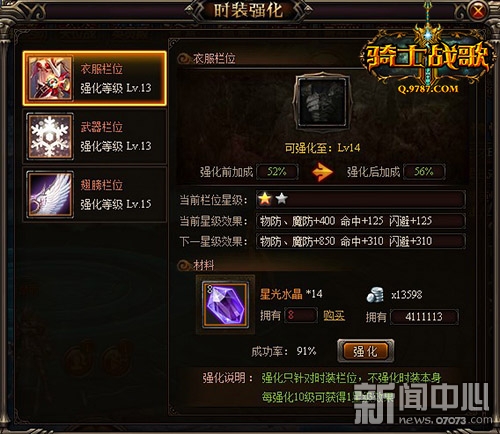 ¡¡¡¡È«ÐÂʱװǿ»¯ÏµÍ³²ÉÓöÀÌØµÄÇ¿»¯Ä£Ê½£¬Ç¿»¯¹ý³Ì²¢²»ÊÇÖ±½ÓÇ¿»¯Ê±×°±¾Éí£¬¶øÊÇÕë¶ÔʱװÀ¸½øÐÐÇ¿»¯£¬ËùÓеÄÇ¿»¯ÊôÐÔ½«ÔÚ×°±¸À¸ÉϽøÐÐÏÔʾ¡£ÕâÑùµÄÇ¿»¯Ä£Ê½½«´ó´ó¼õÉÙÍæ¼ÒÔÚ¸ü»»Ê±×°Ê±ËùÐèÒªÏûºÄµÄÇ¿»¯²ÄÁÏ£¬ÕæÕýµÄ×öµ½Ê±×°Ç¿»¯µÄ±£Öµ£¡
