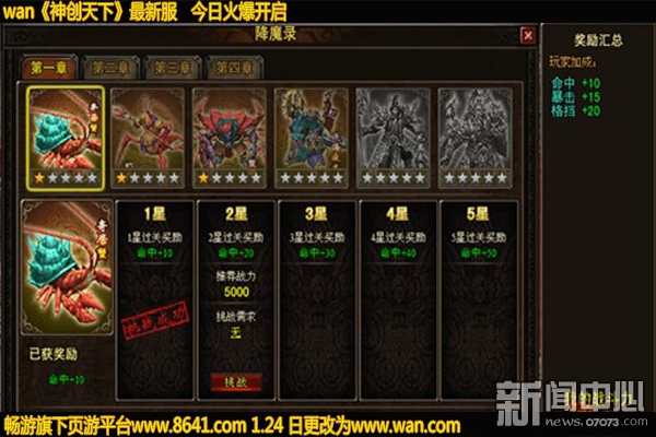 ¡¡¡¡wan¡¶Éñ´´ÌìÏ¡·½µÄ§Â¼£¬ÊÇÍæ¼ÒÃâ·ÑÌáÉýÊôÐÔµÄÒ»´ó;¾¶¡£½µÄ§Â¼·ÖΪËÄÕ£¬Ã¿ÕÂ6¸ö¹Ø¿¨£¬Ã¿¹Ø·ÖΪ5ÐÇ£¬Íæ¼ÒËæÊ±¿ÉÒÔÌôÕ½½µÄ§Â¼¡£Õ½Ê¤¸Ã¹Ø¿¨µÄÊØ»¤ÕßÊÓΪͨ¹Ø£¬Í¨¹Øºó¿ÉÒÔ»ñµÃÓÀ¾ÃµÄÈËÎïÊôÐԼӳɡ£ÀÛ¼ÆÒ»¶¨µÄÕ½ڽø¶È£¬»¹¿ÉÒÔ»ñµÃ¶îÍâµÄÊôÐԼӳɽ±Àø¡£