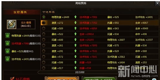 ¡¡¡¡µ±Éñ±øÓµÓÐ2Ìõ£¨»òÒÔÉÏ£©³ÈÉ«ÊôÐÔʱ£¬¿ÉÔڸ߼¶¼ÀÁ¶½çÃæ£¬Ñ¡ÖГ×êʯ¼ÀÁ¶”½øÐÐ×êʯ¼ÀÁ¶¡£