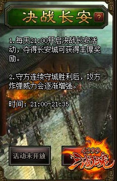 ¡¡¡¡Äã¿ÉÒÔ²»²Î¼ÓÁíÍâÁ½¸ö»î¶¯£¬µ«¾ö²»¿É²»²Î¼ÓÕâÒ»¾üÍŻ“¾öÕ½³¤°²”¡£“¾öÕ½³¤°²”ÄË4399Èý¹ú»êÀï×î×îÖØÒªµÄ¾üÍŻ£¬Ã»ÓÐÖ®Ò»¡£È«·þ³ÉÔ±¾ù¿É²Î¼Ó£¬Ö»Òª²Î¼Ó»î¶¯£¬¾ÍÓзáºñµÄ½±Àø£¬ÊµÎªÓÕÈË£¬Áí2¸ö»î¶¯Ëù²»ÄܱÈÖ®£¨Ãþ½ð»î¶¯ËäÒ²½±Æ·ÆÄ·á£¬µ«³É±¾Ì«¸ß£©¡£