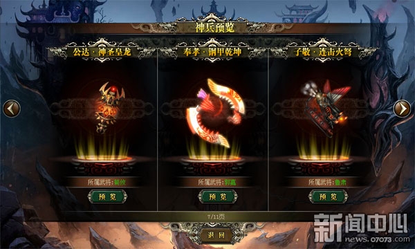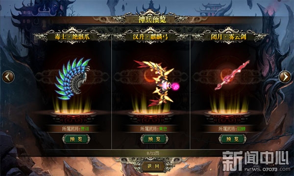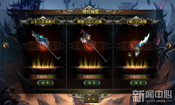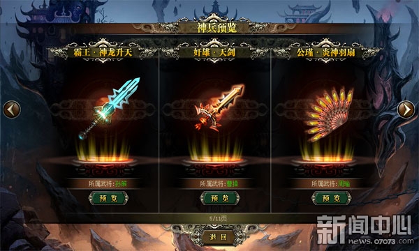神兵天降,《三国论剑》神话兵器前瞻预览,在《三国论剑》的全新神兵功能中,一共推出了33种不同的神话兵器,分别对应33位神话武将与无双武将,每一把神话武器都有着强大的战力,且仅限对应的专属武将使用,也因此有着极大的价值。