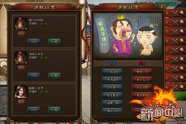 ¡¡¡¡Ö»ÒªÄãÔÚ¸çÃÇÍø¡¶Èý¹ú»ê¡·Öгɹ¦×¥²¶µ½Ä³¸öÅ«Á¥Ö®ºó£¬±ã¿ÉÖ±½Ó¶ÔÅ«Á¥½øÐе÷½Ì¡¢Ìô¶ºÁË£¡½ìʱ£¬Íæ¼Ò¼È¿ÉÒԓѹե”Å«Á¥£¬ÈÃËûÔ´Ô´²»¶ÏµÄΪ×Ô¼ºÌṩÁ¸²Ý¡¢Òø×Ó¡¢ÉõÖÁÊǾÑé×°±¸Ö®ÀàµÄ×ÊÔ´½±Àø£¬Ò²¿ÉÒÔ“Ìô¶º”Å«Á¥£¬»ò´øTAÒ»ÆðÅÝÎÂȪ¡¢»òÈÃTAȥɨ´óÂí·……¾¡Ç鳩ÏíÉíΪÖ÷È˵ĸ÷ÏîÌØÈ¨¡£