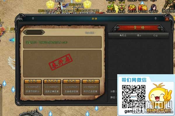 ¡¡¡¡ÓÎÏ·ÖУ¬¿Æ¾ÙÿÌì12:05—12:12¾ÙÐУ¬ËùÓеȼ¶ÔÚ40¼¶ÒÔÉϵÄÍæ¼Ò¶¼Äܹ»²ÎÓëÆäÖУ¬Íæ¼Òµã»÷ÓÎÏ·½çÃæÉÏ·½µÄ¿Æ¾Ù°´Å¥£¬±ãÄܹ»Ö±½Ó²ÎÓ룡¿Æ¾ÙÌâĿΪѡÔñÌ⣬ÿÌâ¹²ÓÐËĸöÑ¡Ïÿ´Î¿Æ¾Ù¹²20¸öÌâÄ¿£¬³öÏÖÌâÄ¿ºó£¬Íæ¼Ò´ðÌâÔ½¿ìÔòÄÜ»ñµÃÔ½¸ßµÄ»ý·Ö£¬ÔÚ´ðÌâ½çÃæÓÒ²àÔòÊDZ¾´Î¿Æ¾ÙµÄ»Ê°ñ£¡