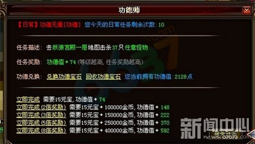 ¡¡¡¡ÈçºÎ»ñÈ¡¹¦µÂÄØ£¿ÔÚ³ÇÀïµÄ¹¦µÂʦ´¦Äܹ»½ÓÈ¡ÈÕ³£µÄ¹¦µÂÈÎÎñ£¬Ã¿ÈÕ¿ÉÒÔ½Óȡʮ´Î£¬Íê³ÉÈÎÎñÖ®ºó¾ÍÄܹ»»ñµÃÏàÓ¦µÄ¹¦µÂÖµ¡£6637¡¶ÖðÈÕÕ½Éñ¡·¹¦µÂÈÎÎñÒ»°ã¾ÍÊǽµÑý³ýħ֮ÀàµÄÈÎÎñ£¬±ÈÈ絽ijijµØÍ¼»÷ɱ¶àÉÙÖ»¹ÖÎïÖ®À࣬·Ç³£ÈÝÒ×Íê³É¡£Èç¹ûÏÓÂé·³¿ÉÒÔÖ±½ÓʹÓÃÉÙÔª±¦Ñ¡ÔñÁ¢¼´Íê³É£¬»¹¿ÉÒÔ¶à±¶ÁìÈ¡¹¦µÂÖµ£¬ÊµÔÚÊÇÔÙʵ»Ý²»¹ý¡£