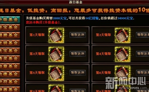 ¡¡¡¡9377¡¶ÖðÈÕÕ½Éñ¡·Ã¿Ò»ÖÖ»ù½ðͶ×ʽð¶î²»Í¬£¬ÊÕÒæÒ²¸÷Óв»Í¬¡£Éý¼¶»ù½ðÊÇ×îºÏËãµÄͶ×ÊÏîÄ¿£¬2888Ôª±¦ÄÜÊÕ»ñ¼ÛÖµ34000;Ѱ±¦¡¢³á°ò¡¢×øÆï¡¢·¨±¦¡¢Í¨Áé¡¢ÉñÆ÷¡¢Ê±×°»ù½ðͶ×ʽð¶îΪ4888Ôª±¦£¬ËäÈ»ÊÕÒæ¸÷²»Ïàͬ£¬µ«´ó¸ÅÔÚ12000ÖÁ16000ÅÇ»²£»Ê£ÏµÄѫա¢¹¦µÂ¡¢»¤·ûÈýÀà»ù½ð£¬Í¬ÑùͶ×Ê2888£¬Ö»ÓÐ7000ÊÕÒæ¡£