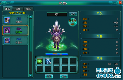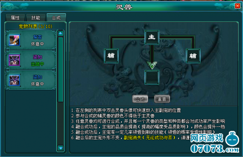 合成:合成功能通过消耗辅灵兽的方式以提升主灵兽的品质