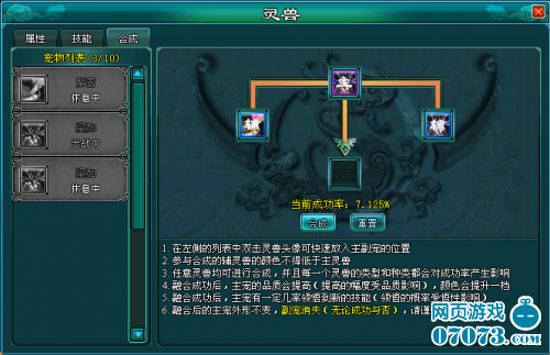 3. 任意灵兽均可进行合成,并且每一个灵兽的类型和种类都会对成功率产生影响