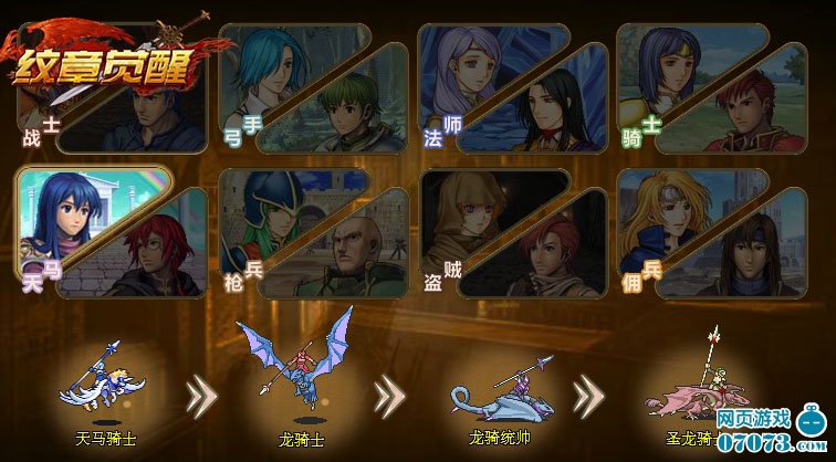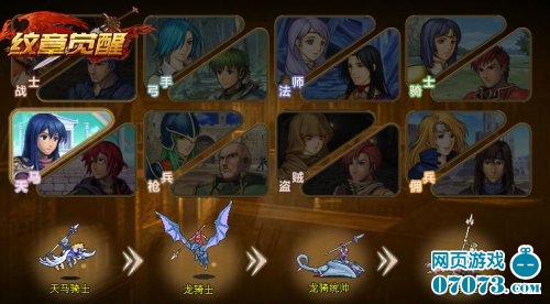 战士、弓箭手、魔法师、轻骑士、天马骑士、枪兵、盗贼、佣兵。高防的战士,不会被近战反击的弓箭手,魔法攻击高的魔法师,中庸的轻骑士,帅气的天马骑士,血高的枪兵,迅捷的盗贼,高攻击的佣兵。不同职业,不同能力,不同特色,不同快乐。相生相克,相辅相成。