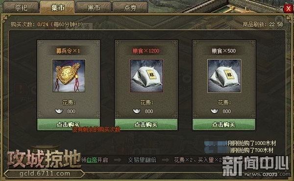 ¡¡¡¡ÖµµÃÒ»ÌáµÄÊÇ£¬¼¯ÊÐÉÌÆ·µÄµÄ²îÒìÖ÷ÒªÌåÏÖÔÚ¼Û¸ñÓëÊýÁ¿µÄ¶Ô±ÈÉÏ£¬ÐÔ¼Û±ÈÔ½¸ß£¬ÉÌÆ·µÄÆ·ÖʾÍÔ½ºÃ£¬6711¡¶¹¥³ÇÂӵء·¼¯ÊÐÉÌÆ·Æ·ÖÊÓɵ͵½¸ß·Ö°×¡¢À¶¡¢ÂÌ¡¢»Æ¡¢ºì¡¢×ÏÁù´ó¼¶±ð¡£ÁíÍâ£¬Íæ¼ÒÔÚÀ©Õ¹ÊÆÁ¦¹ý³ÌÖÐÕ¼Áì“°×µÛ”³Ç³Øºó¼¯Êн»Ò×Á¿¿ÉÒÔ·±¶£¬¼´¿ÉÒÔ»¨·ÑÁ½±¶ÒøÁ½£¬ÂòÈëÁ½±¶×ÊÔ´£¬²»¹ýïÙÌú¡¢Ä¼±øÁîÁ½Ïî×ÊÔ´³ýÍâ¡£