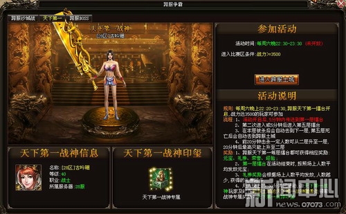 ¡¡¡¡1¡¢Ã¿ÖÜÁùÍí22:20-23:10Ϊ¿ç·þÌìϵÚÒ»Õ½ÉñÕù¶áÕ½µÄ»î¶¯Ê±¼ä¡£ËùÓб¾·þÕ½Á¦>=3500µÄÍæ¼Ò½«Êܵ½ÑûÇ룬½øÈë¿ç·þÍÁ³Çºóͨ¹ý“»î¶¯Ê¹Õß”½øÈëÀÞ̨¡£