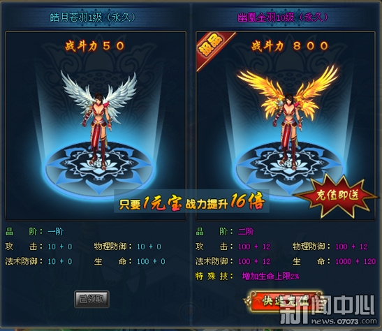¡¡¡¡ÔÚ311wan¡¶ÓùÌì¡·ÖУ¬µ±´©Ô½µÄÈËÃÇ´ïµ½29¼¶µÄʱºò£¬¾Í¿ÉÒÔ»ñµÃϵͳÔùË͵ĵÚһ˫½à°×µÄ³á°òÁË£¬»òÕßͨ¹ýÊ×´ÎÈÎÒâ½ð¶îµÄ³äÖµ»ñµÃ¸ü¸ßÒ»µÈ¼¶¶þ½×³á°òÓĻ˽ðÓ𣬳á°òµÄµÈ½×Ô½¸ß£¬¸³ÓèµÄÊôÐÔ¾ÍÔ½¶à£¬ÌáÉýµÄÕ½¶·Á¦Ò²¾ÍÔ½¶à£¬Í¬Ê±£¬Íæ¼Ò»ñµÃµÄ³á°ò¿ÉÒÔͨ¹ýÅàÑøÀ´²»¶ÏµÄÌáÉý£¬Ìý˵×îÖյijá°ò״̬¿ÉÒÔ·ÉÔ½¾ÅÌìÒøºÓ£¬åÛÓÎÌì¿ÕÖ®ÉÏŶ