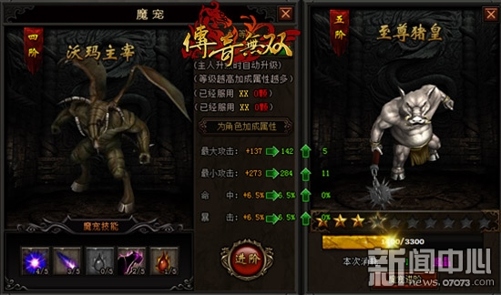 ¡¡¡¡Íæ¼Òͨ¹ýÖ÷Ïß¾çÇéÕÂ½Ú“ÌØÊâµÄ³èÎï”25¼¶ÈÎÎñ£¬ÏûÃðħÍõºó»ñÈ¡¿ª·Å³èÎïϵͳ¡£ ³èÎïÔݶ¨10½×10¼¶£¬Éý½×Íâ¹Û·¢Éú±ä»¯£¬Éý¼¶ÈËÎïÊôÐÔÌáÉý£¬ÈËÎïÊôÐÔ£º¹¥»÷£¨ÎïÀí£¬Ä§·¨£¬µÀÊõ¹¥»÷£©£¬ÃüÖУ¬±©»÷¡£ ħ³èµÄÉý½×ÐèÒªÏûºÄħ¾§£¬Ä§¾§¿Éͨ¹ýÏà¹ØÈËÎï¼°»î¶¯ºÍÉ̳ǻñµÃ£¡