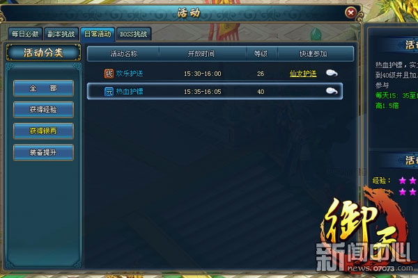 ¡¡¡¡¡¶ÓùÌì¡·“ÈÈѪ»¤ïÚ”¸±±¾ÖУ¬Íæ¼Ò½øÈëµÄÌõ¼þÓÐ2¸ö£¬³ýÁ˵ȼ¶µ½´ï40¼¶ÒÔÍ⣬»¹±ØÐë¼ÓÈë°ïÅÉ£¬Èç¹ûûÓпÉÒÔÑ¡ÔñµÄ°ïÅÉ£¬Íæ¼Ò¿ÉÒÔ»¨·Ñ2wÒøÁ½×Ô¼º´´½¨°ïÅÉ¡£¸Ã¸±±¾È«Ì쿪·Å£¬Èç¹ûÍæ¼ÒÔÚÿÌìµÄ15:35-16:05Õâ¸öʱ¼ä¶Î½øÐГ»¤ïÚ”£¬¿ÉÒÔ»îµÃ150%µÄ½±Àø¡£Ã¿ÈËÿÌìÓÐ2´Î»¤ËÍïÚ³µµÄ»ú»á£¬Ã¿´Î»¤ËÍʱ¼äΪ15·ÖÖÓ¡£