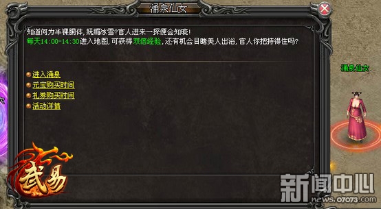 ¡¡¡¡Íæ¼ÒÔÚÖ÷³ÇѰÕÒµ½NPC“ӿȪÏÉ×Ó”£¬¾ÍÄܽøÈëµØÂöӿȪÁË£¬37¡¶ÎäÒס·ÎÂȪ³¡È«Ì쿪·Å£¬Ã¿Ìì14£º00-14£º30Ϊ˫±¶½±ÀøÊ±¼ä¡£µÈ¼¶´ïµ½30¼¶ÒÔÉϵÄÍæ¼Ò¿ÉÒÔ½øÈëµØÂöӿȪ£¬Äã¿ÉÒÔ×Ô¼ºÒ»ÈËǰÍù£¬Ò²¿ÉÒÔ½ÐÉÏÈýÎåÐֵܻï°é£¬Óë´ó¼Òһͬ×é¶ÓǰÍùŶ£¡