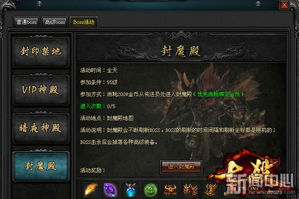 ¡¡¡¡¡¶Æßɱ¡·“·âħµî”¸±±¾È«Ì쿪·Å£¬Íæ¼ÒµÈ¼¶ÔÚ55¼¶ÒÔÉϼ´¿É½øÈ룬ÿÈËÿÌìÓÐ5´Î½øÈë»ú»á¡£·âħµîÖл᲻¶Ïˢи÷ÖÖBOSS£¬Íæ¼Ò½«BOSS»÷ɱºó¾ÍÓлú»á»ñµÃµôÂäµÄ¸÷ÖÖ×°±¸£¬ÇҸø±±¾ÖеÄ×°±¸ÊµÁ¦½ÏÇ¿´ó¡£