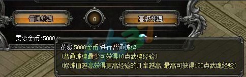 ¡¡¡¡Íæ¼ÒÏëÒª»ñµÃÈËÎïÊôÐԼӳɼ°ÌØÊâ¼¼ÄܾͿÉͨ¹ýÐÞÁ¶Îä»êµÈ¼¶£¬µ±È»Ê¹Óýð±Ò¡¢Áé»ê½á¾§»òÕßÔª±¦Ò²¿ÉÀ´Ôö¼ÓÎä»ê¾Ñé¡£Íæ¼ÒÿʹÓÃ5000½ð±Ò¾Í¿ÉÌáÉý10µãÎä»ê¾Ñé¡£ÐÞÁ¶ÖµÔ½¸ß£¬»ñµÃ¸ü¸ß¾ÑéµÄ¼¸ÂÊÔ½¸ß£¬×î¸ß¿É»ñµÃ120µãÎä»ê¾Ñé¡£6637¡¶ÎäÒס·Ê¹ÓÃÁé»ê½á¾§»òÕß¶îÍ⻨·Ñ500Ôª±¦½øÐи߼¶Á¶»ê£¬Ôò±Ø¶¨»ñµÃ120µãÎä»ê¾Ñé¡£